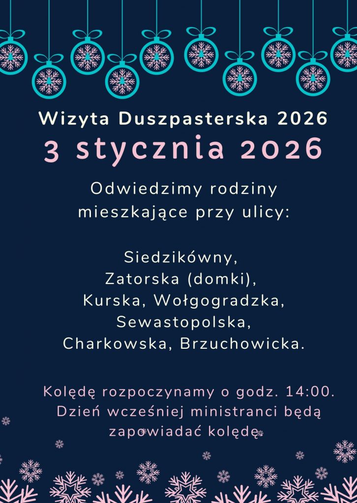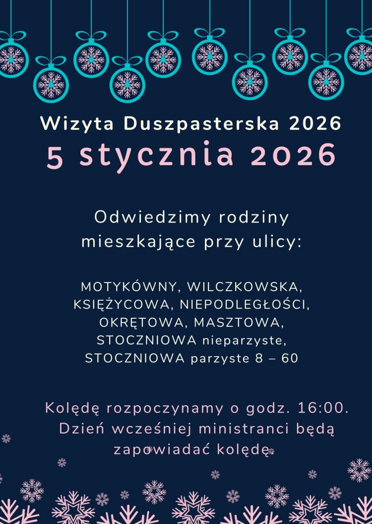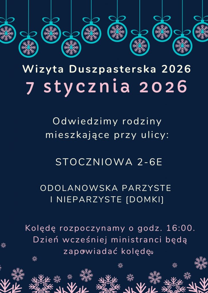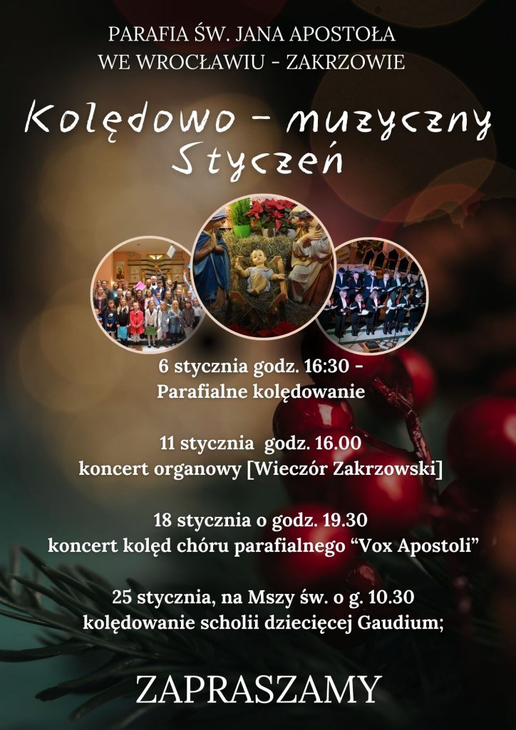 Serdecznie zapraszamy wszystkich parafian oraz gości na Kolędowo – muzyczny styczeń w naszej Parafii – czas wspólnego śpiewania kolęd i pastorałek modlitwy i radości z tajemnicy Narodzenia Pańskiego.