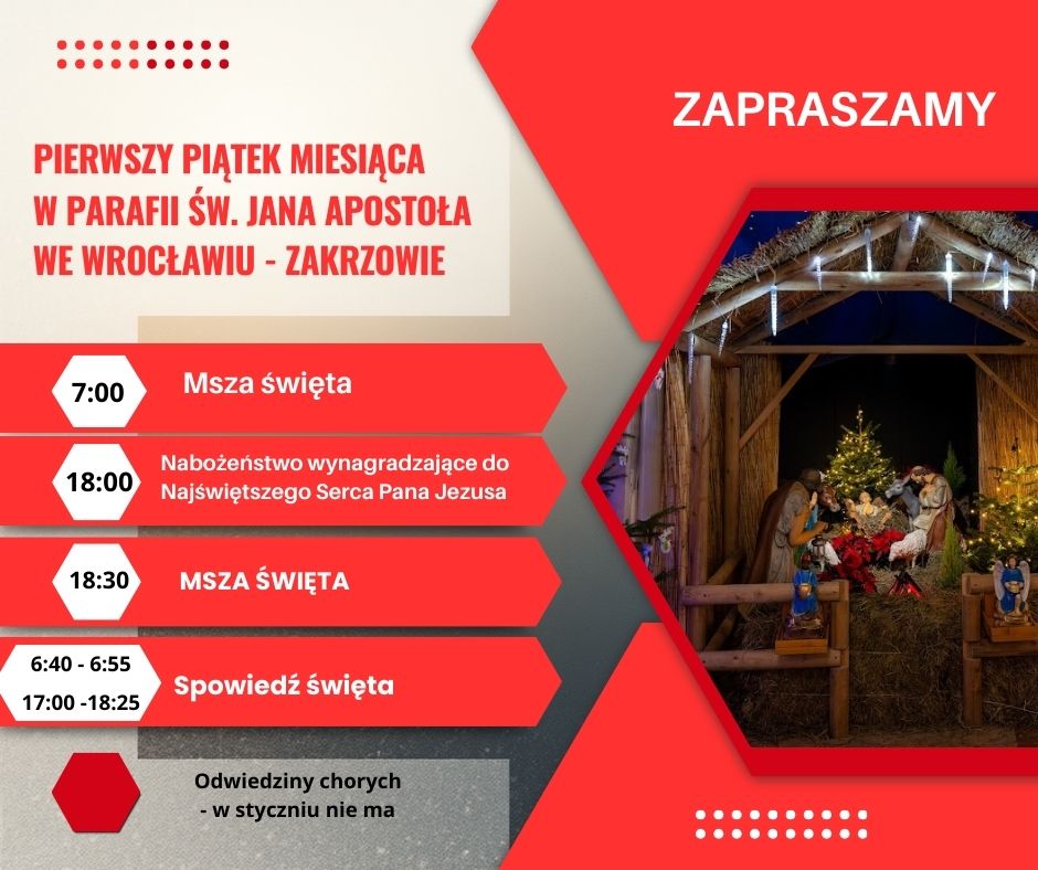 Decydując się na spowiedź pierwszopiątkową warto wziąć pod uwagę, że obecnie trwa wizyta duszpasterska, więc od godziny 18:00 spowiadał będzie tylko jeden ksiądz.