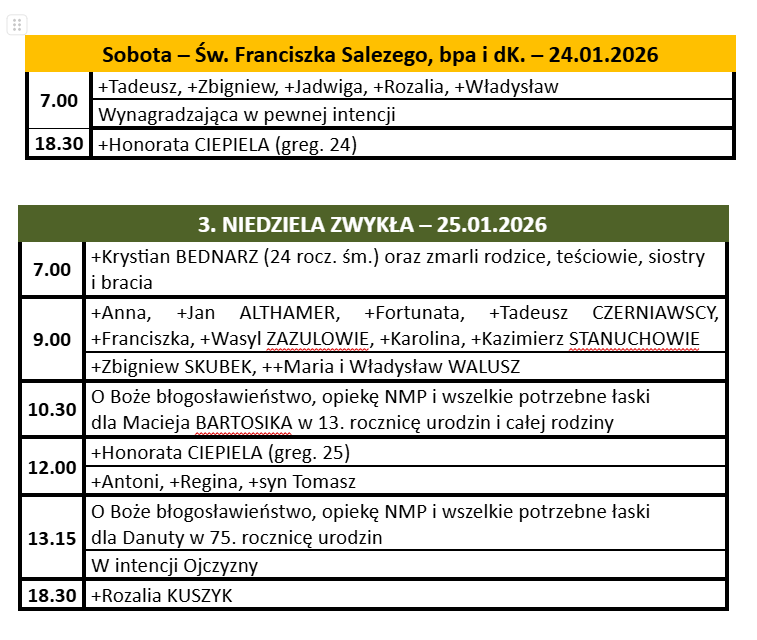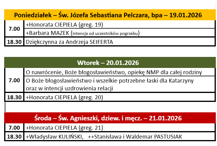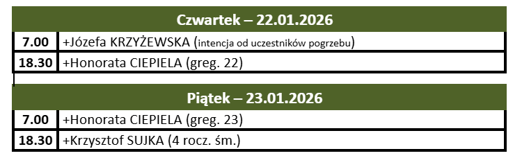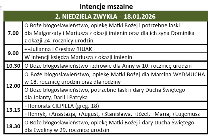 Od 30 grudnia 2025 roku do 27 stycznia 2026 roku – Kancelaria parafialna czynna tylko w soboty od 10:00 do 11:30